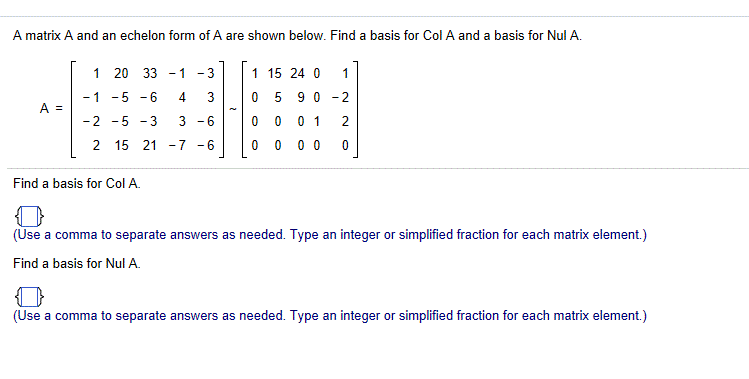 A Matrix A And An Echelon Form Of A Are Shown Below Chegg Com